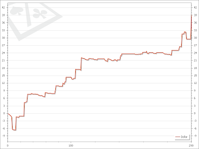 So hier mal mein 7 Tages Graph. Scheinbar wurden nicht alle Turniere richtig getrackt sodass mein Plus auf dem Graphen komischeweise nicht so im Plus ist. Meine Bankroll sagt aber dafür was anderes aus unabhängig vom Bonus. Wie man sehen kann zeigt die Tendenz steigend nach oben. Vorallem im den 2. Hälfte. Das liegt wohl sicherlich daran da ich am Anfang noch nicht richtig reingefunden habe.